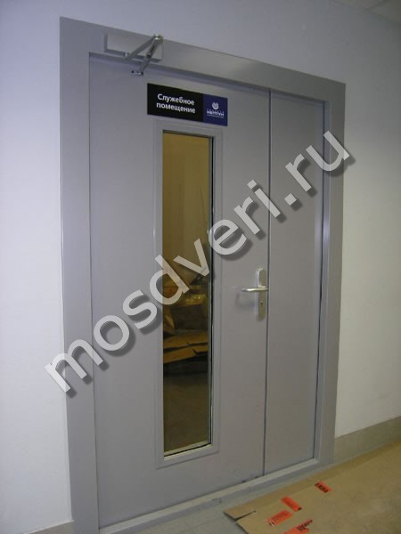 • Специальная конструкция. Чаще всего такие модели имеют полуторную или двустворчатую конструкцию – для облегчения эвакуации из помещения. Кроме того, рекомендуется оснащать их полотно вставкой из огнеупорного стекла, чтобы в случае опасности можно было наглядно оценить сложившуюся в помещении ситуацию.