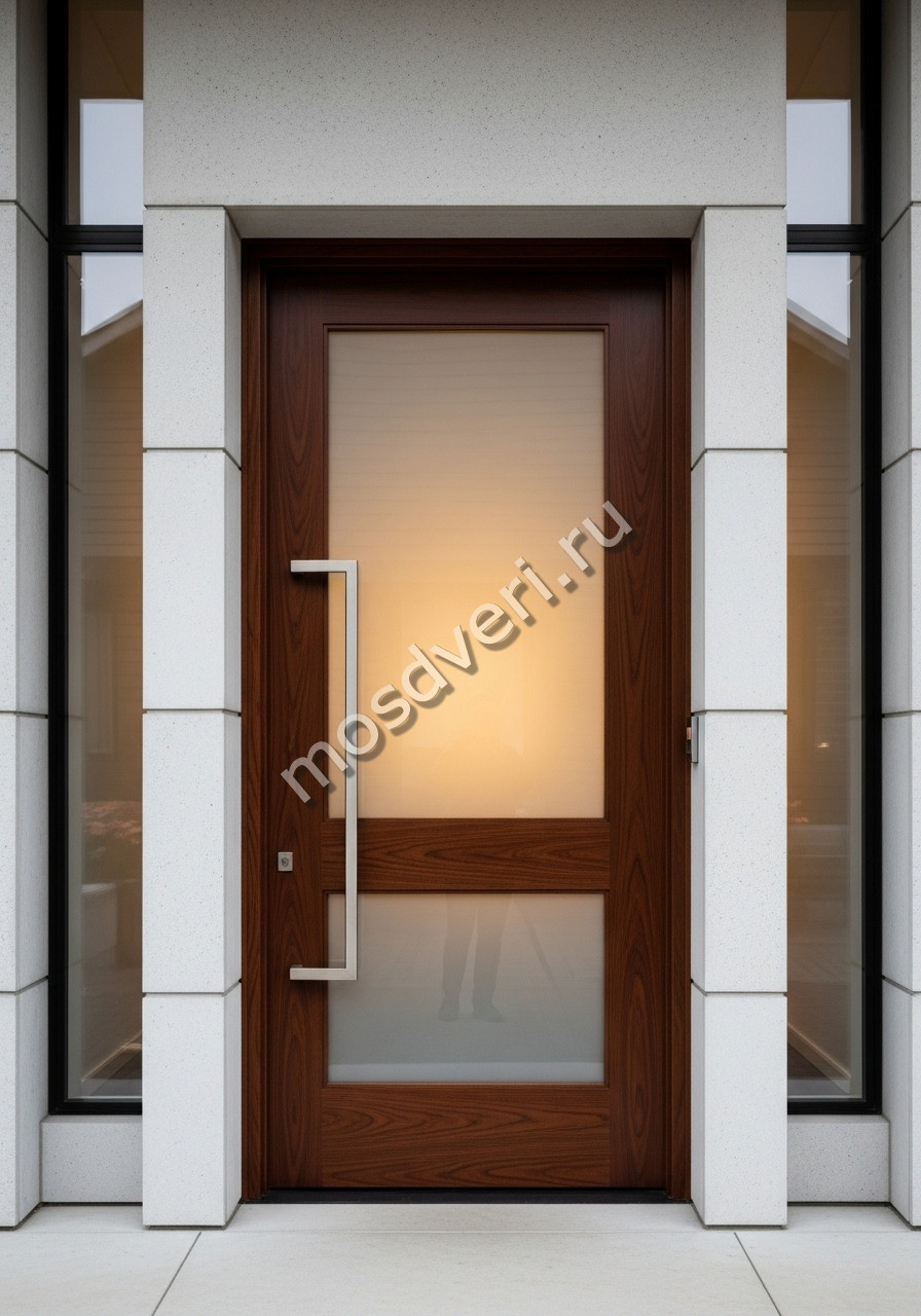 Большая входная дверь в дом коричневая со стеклом — сочетает в себе современный дизайн и превосходные защитные характеристики.