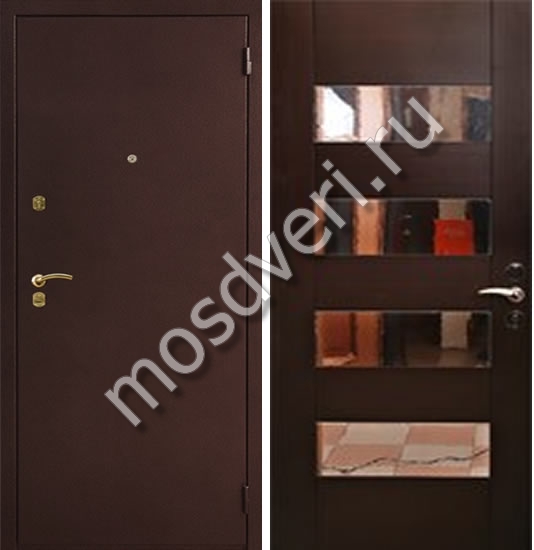 Входная дверь с зеркальными элементами — совмещает стильный внешний вид и высокую надёжность.
