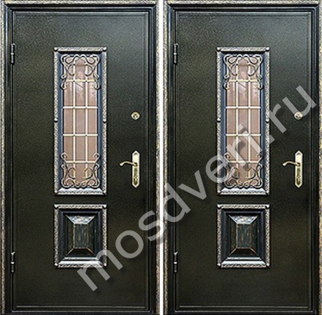 Входная дверь с металлофиленкой, стеклом и ковкой — сочетает в себе современный дизайн и максимальную защиту.