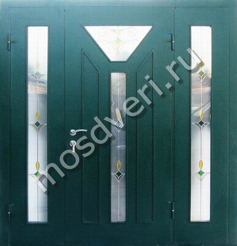 Двухстворчатая входная дверь в частный дом с витражами из массива в Динской